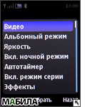Кроме того, доступна также фотосъемка с использованием альбомного режима, выбор уровня яркости, использование автотаймера, серийного режима и другое. Что касается настроек видео, во встроенной камере Nokia 8800 Arte, они следующие.