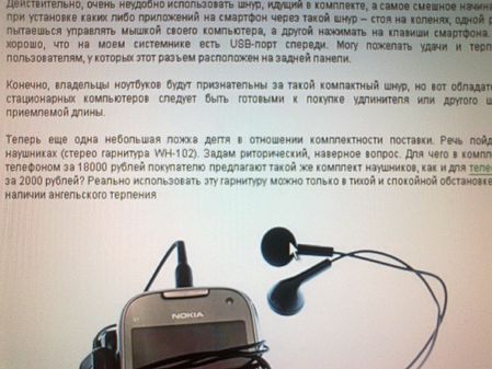 поработать в Интернете. Зарядка полностью разряженной батареи занимает около двух с половиной часов. Комплектная стереогарнитура Nokia WH-102 вполне может использоваться