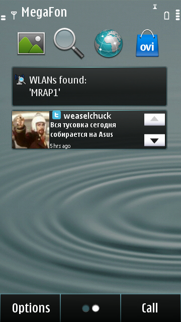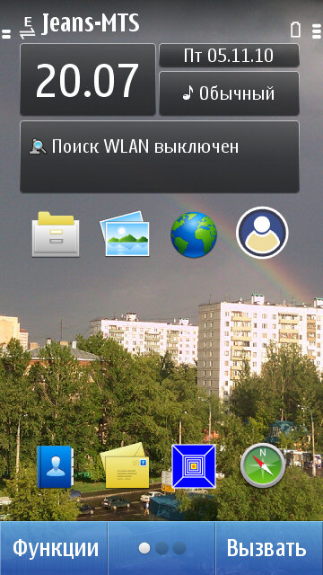 Программная организацияКлючевые отличия с пользовательской точки зрения сводятся к тому, что в Symbian^3 применяется система одиночного клика, в 4 раза возросла скорость скроллинга, изменен диспетчер задач, перерисованы многие приложения, ну а в общей сложности изменений насчитывается более 250. Далеко не все, конечно, заметны пользователям, многие относятся к организации работы отдельных приложений, так что мы рассмотрим самые важные. Это уже далеко не S50 5th Edition в N97, одним словом. Рабочих столов три, это первое отличие от Symbian^1. Кому-то кажется, что три – слишком мало, однако я не думаю, что кто-то пользуется 10 рабочими столами в том же Samsung Wave. Мне для размещения нужных иконок и виджетов хватило два рабочих стола, третий я отключил. Число виджетов, которые могут разместиться, фиксировано, как фиксирован и размер каждого. Это пять прямоугольных окошек, в вертикальном или горизонтальном режиме, которые располагаются в правильном порядке. Окошки не накладываются друг на друга, рабочий стол выглядит аккуратно, но малое число одновременно доступных виджетов на экране и маленький их размер – это недостаток. Особенно это становится заметно, когда работаешь с виджетом социальных сетей, на экране может поместиться только одно сообщение. Виджеты могут быть как в онлайн-режиме (автоматически обновляют информацию), либо оффлайн, если вы не хотите постоянно включенной передачи данных.