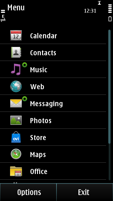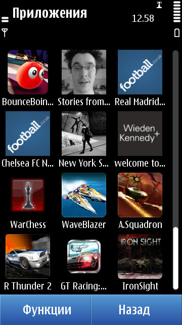 Помимо виджетов присутствуют традиционные панели иконок быстрого доступа и избранных контактов, их можно располагать на экране наряду с мини-приложениями. Иконок быстрого доступа может быть 8 (две панели по четыре ярлыка), панелей контактов – две. Главное меню не изменилось, мне не очень нравятся иконки, слишком похожие на первого представителя сенсорных смарфтонов, 5800 XpressMusic. Правда за счет яркого AMOLED экрана иконки смотрятся намного приятнее, но до уровня прорисовки в iPhone они недотягивают. Как обычно, можно изменять порядок пунктов, создавать папки, менять размер шрифта. Хороший уровень кастомизации, в общем.
