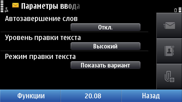 Ввод текста. Виртуальная клавиатура почти не изменилась со времен Symbian^1, соответственно удобство ввода находится на среднем уровне. Нет QWERTY-раскладки в вертикальной ориентации экрана, нет отдельной кнопки переключения языка ввода (это делается в три клика), нет знаков препинания на основной клавиатуре, только точка. В общем, до идеала в плане набора текста, клавиатуры от HTC, далеко.