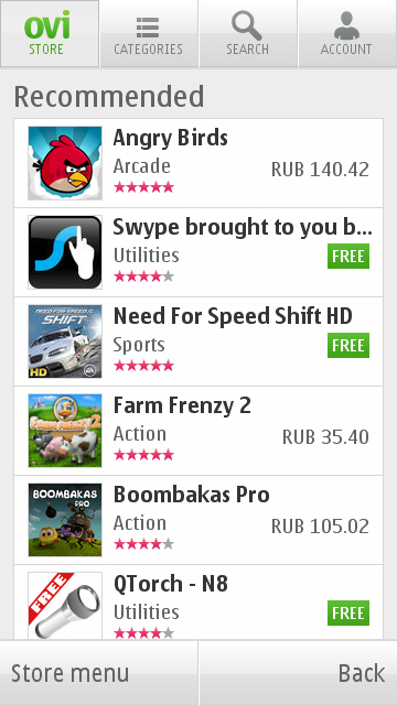 Ovi Store. Версия магазина приложений Ovi – обновленная, она значительно удобнее, чем предшествующая в той же N97. Это относится не только к скорости работы, но и вообще организации, сортировке и поиску приложений. Вполне неплохой клиент, правда пути для улучшения, конечно, также есть. Радует, что имеется биллинг оператора, не обязательно оплачивать приложения только по крединтой карте, как в том же Android. Не радуют цены на программы, так что надеюсь, что с появлением большего числа программ изменятся и цены на них, ведь сейчас конкуренция не так высока.
