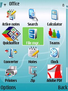 Меню работает быстро и без подвисаний. Программы запускаются без задержек. По этому параметру E51 приближается к телефонам. Набор установленных приложений в большинстве своем стандартен. Имеется офисный пакет Quickoffice 3.8.12, Adobe PDF LE 1.5, Zip manager 1.0, Teams, Wireless keyboard, Flash Player 2.0, Visual Radio, Nokia Maps 1.2, WLAN Wizard. Кроме того, есть полный комплект голосовых функций: набор, произнесение текста, предустановленная Opera mini и обширный список бесплатных программ, доступных через Catalogs (игры Global Race, Global Cricket, антивирус F-Secure, программа для просмотра погоды Worldmate, программа для чтения книг Mobipocket Reader Pro), а также набор программ от Nokia (Gizmo, Wireless Presenter, Mail for Exchange, Widsets). Как и в Nokia E90, в смартфоне имеется приложение Active Notes. Здесь кроме текста можно вставить любые объекты: изображения, звуковые и видеофайлы, визитные карточки контактов, прочие файлы (тип получаемого файла — HTML). Расширенная заметка может быть открыта при помощи интернет-браузера, а также отослана посредством SMS, MMS, Bluetooth и ИК-порта. Менеджер заметок позволяет перемещать их, копировать из памяти телефона на карту памяти и обратно, создавать папки.