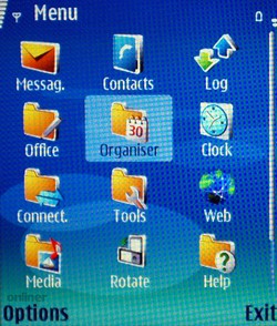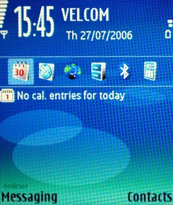 Функциональные кнопки столь же хороши. Клавиша меню слегка утоплена по сравнению с окружающими ее кнопками, проблем это не доставляет и исключает случайные нажатия при работе с каким-либо приложением. Пятипозиционный джойстик идеален. Он достаточно крупный, пользоваться им удобно. Любые отклонения и нажатия фиксируются четко, палец не скользит. Справа и слева джойстика находятся перегородки. Над клавиатурой расположено сущее великолепие – беспрецедентно яркий экран. Обладая разрешением в 352x416 пикселей дисплей (35x41 мм) отображает 16 миллионов цветов. И это как раз тот случай, когда за впечатляющими цифрами скрывается реальное чудо. Отдельные пиксели экрана рассмотреть невозможно, картинки на E60 отображаются лучше, чем на матрице ноутбука HP nx9020, на котором писались эти строки. При этом углы обзора никакого дискомфорта не доставляют, на солнце экран практически не слепнет. Просматривать интернет-страницы, в том числе и насыщенные графикой, на таком дисплее – сплошное удовольствие. Конечно, в природе существуют и более инновационные мобильные экраны (в связи с этим вспоминается телефон Sharp с дисплеем 640x480, увиденный на последнем CeBIT'e), но в условиях "здесь и сейчас" – это лучшее, что может получить пользователь. К тому же, не стоит забывать об относительно невысокой стоимости аппарата. Прямо над блестящим логотипом Nokia находится прорезь динамика, скрытая стильной сеточкой, а чуть выше – датчик освещенности, который включаетвыключает подсветку. Светятся в телефоне, кстати, и упомянутые перегородки на клавиатуре, что выглядит просто здорово.