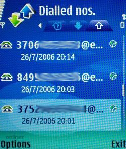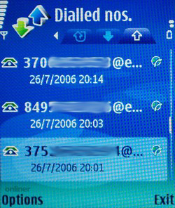 Пункт Logs ничем не примечателен. E60 сохраняет по 20 входящихисходящихнеотвеченных звонков. Установленный стандартный браузер великолепен. Он позволяет безболезненно просматривать любые сайты (за исключением, пожалуй, тех, которые полностью сделаны на флеше). Единственный возможный недостаток такого браузера – он не "бережет" трафик, в отличие от Opera mini. Однако разница несущественна. И потом не стоит забывать, что телефон может работать с Wi-Fi, что более чем актуально, к примеру, в родном офисе. Это плавно подводит нас к описанию одной из самых замечательных функций E60. Телефон может совершать звонки по интернету (SIP-протокол). Для этого использовались услуги (разумеется, платные) сервиса sipnet.ru. Стоимость IP-звонков, которые можно совершить при помощи конкретно этого провайдера, даже ниже, чем у Skype. Правда, хуже и качество. Хотя, например, тестовый звонок в американскую службу поддержки Apple прошел отлично. Мы планируем подробнее описать возможности VoIP-телефонии для E60 в отдельной статье.