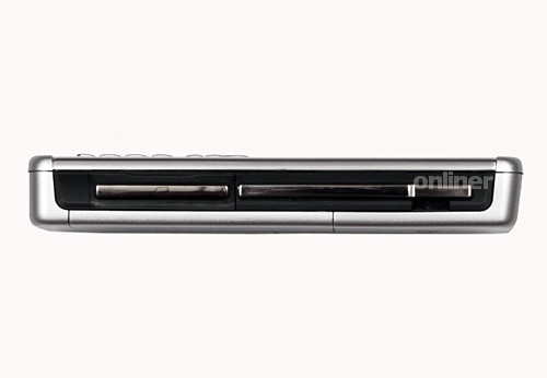 На правом боку аппарата имеется "бойница" для карточки памяти. Конструкция крышки проста и незатейлива. Чуть выше располагается прорезь динамика. На левой грани Е60 находятся клавиши громкости, "голосовая" кнопка, а внизу – инфракрасный порт (реверанс в пользу, мягко говоря, не слишком современных телефонов).