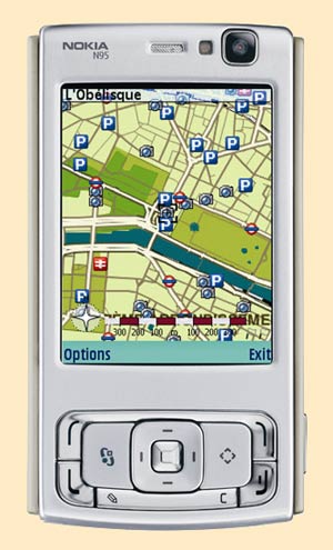 Помимо всего, N95 имеет встроенный GPS приемник и карту. В качестве приложения для навигации используется Nokia Maps. Холодный запуск GPS очень длинный и занимает от 5 до 10 минут. Причем очень приятно сделан сам процесс отображения местоположения на карте: сначала показывается вращающийся земной шар, потом он начинает медленно приближаться, как будто кто-то включил ZOOM и уже показывается ваше точное местоположение. Карта поддерживает как 2D, так и 3D режимы. Стоит заметить одну вещь, что без SIM карты GPS работать отказывается.