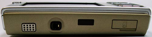 С левого боку расположены гнездо для подключения наушников, тонированное окошко ИК порта и слот для карт памяти формата