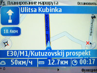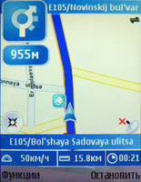 Активация приложения Nokia Maps занимает около 10 секунд. На поиски спутника уходит гораздо больше времени, причем непонятно, почему иной раз необходимо потратить на это дело минут 5. Например, ситуация: пользователь находится на открытой местности, держит коммуникатор открытым (антенна GPS-приемника находится под клавиатурой), направленным поверхностью строго вверх и ждет две-три минуты. В ином случае слайдер закреплен в машине, в сложенном горизонтальном состоянии, рядом с рычагом переключения передач (то есть, в стороне от ветрового стекла) и ловит спутники почти мгновенно (см. видеодемонстрацию). Одно утверждать можно с уверенностью: встроенный GPS-модуль работает на порядок хуже выносного. Например, бесполезно класть N95 рядом с окном - спутники он не найдет, а модуль RoverPC G5 делает это легко. Также легко он ловит спунтики из кармана брюк и из любого места в автомобиле. Причем на поиск спутнииков в любой ситуаци уходит не более 10 секунд. Законы физики не обманешь: чем больше антенна, тем лучше она ловит сигнал спутников, но тем крупнее устройство. Встроенный GPS-модуль аналогичен встроенной камере: с одной стороны она работает априори хуже камеры-"мыльницы" с тем же разрешением снимков за счет лучшей оптики, которую в телефоне невозможно разместить, с другой стороны, камера в телефоне всегда с вами, тогда как фотоаппарат надо брать специально. Так и GPS: встроенный модуль безусловно хуже выносного, но зато он всегда с вами. Еще одни нюанс - точность навигации: иногда N95 дупускает большую погрешность, в несколько десятков метров. Возможно, программа специально "затупляет" точность, дабы не ссорить разработчиков с российскими властями, но как тогда объяснить, что временами навигатор показывает местоположение с погрешностью всего несколько метров? Причем от количества и качества сигналов от спутника это мало зависит. Либо тут действительно имеет место быть погрешность измерения, либо мы опять имеем дело с "кривыми" картами. С программой аппарат справляется довольно сносно: иногда она подтармаживает, но в целом Nokia Maps не показывает признаков тяжелой флегматичности. Запас производительности процессору не помешал бы, но и с этим чипсетом аппарат работает приемлемо. Кстати, за все время тестирования GPS-навигатора (около двух недель), Nokia N95 ни разу не пожаловалась на отсутствие свободной оперативной памяти. Небольшая хитрость: если вы не хотите закрывать приложение, но вам надо, например, позвонить или набрать SMS, то нажмите кнопку "Меню" (большая прямоугольная клавиша слева от "навигационки") и тогда приложение автоматически свернется. При возврате в него все данные будут сохранены. Почему-то производитель не сделал пункт "Свернуть" в меню Nokia Maps. Кроме Nokia Maps, основной программы, в Nokia N95 предустановлено еще два попутных приложения: это "Ориентиры" и "Данные GPS". Обе программы находятся в пункте "Средства":