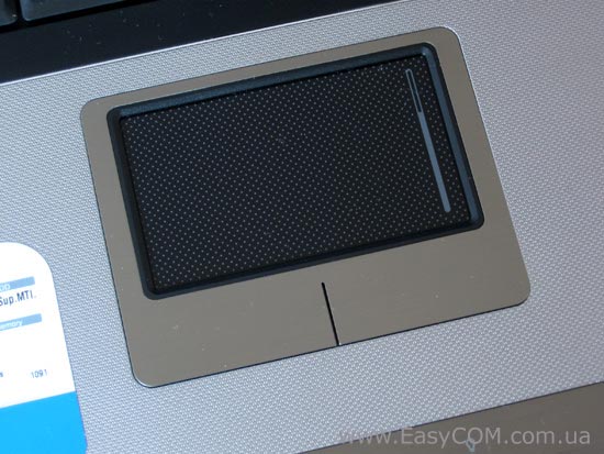 Передвижение курсора обеспечивает столь важный «орган» ноутбука, как тачпад, в основе которого лежит сенсорная панель с неплохой чувствительностью и соотношением сторон схожим с дисплеем. Тачпад обеспечивает пользователя возможностью быстрого скроллинга страниц, как по вертикали, так и горизонтали, но стоит отметить, что отмечена только вертикальная возможность. Сенсорная панель имеет небольшую металлическую окантовку, переходящую снизу в две стандартные клавиши, отвечающие за функции левой и правой клавиш мыши.