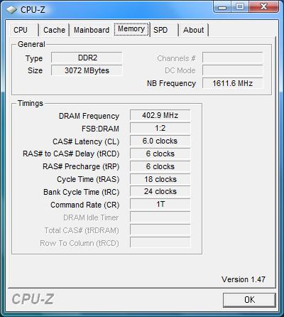 Благодаря программе CPU-Z, мы получаем информацию о частотных характеристиках ядра установленного процессора, его множителе и возможностях, а также информацию об оперативной памяти.
