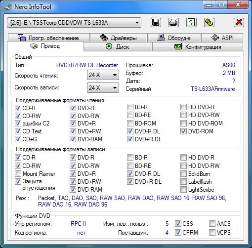Но более «чистые» диски привод читал без проблем. А вот список его возможностей.
