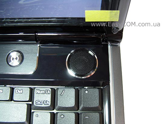 В ноутбуке установлены два динамика Altec Lansing, расположенных над клавиатурой. Их заметить легко, т.к. они накрыты черной круглой сеточкой с хромированным ободом вокруг. Выводимый динамиком звук чистый, качественный и довольно громкий, он находится на уровне всех современных ноутбуков. Блок питания и аккумулятор