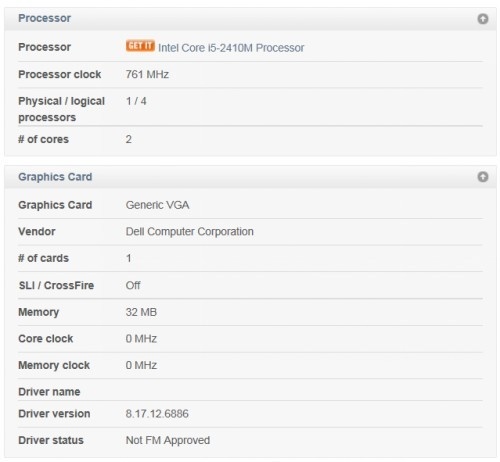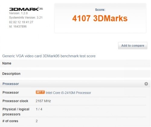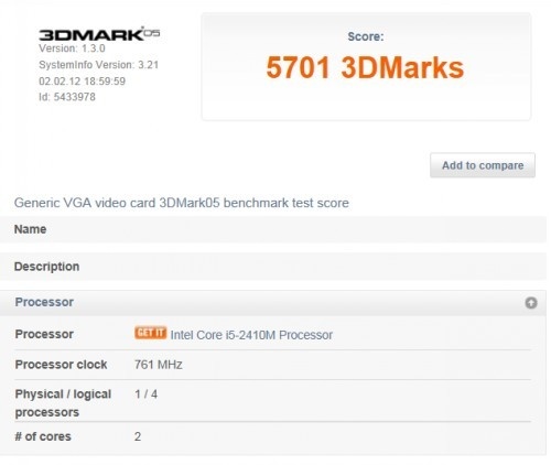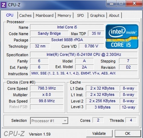 Corei5 2410Mc частой 2,3 ГГц и графикой Intel HD3000, 4 Гб оперативной