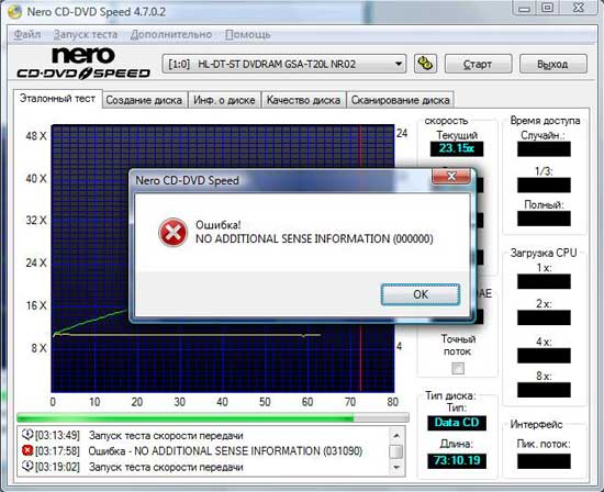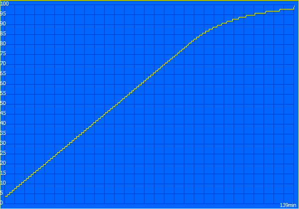 Это результаты тестов читаемости двухслойного диска DVD с бракованным вторым слоем. Многие приводы вполне справляются с этим тестом, и наш испытуемый тоже не стал исключением, но все же коррекция ошибок отработала настолько хорошо, что заметен лишь небольшой всплеск снижения скорости в проблемном месте. Такого качественного результата в протестированных нами оптических приводах ноутбуков еще не наблюдалось.