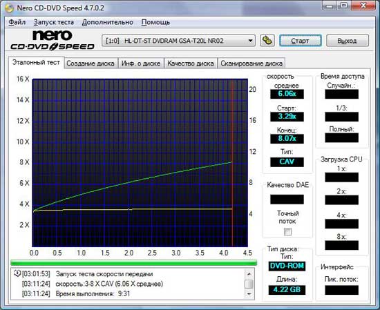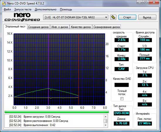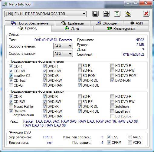 С чтением старых, с неглубокими царапинами DVD, привод справился на отлично, что нельзя сказать про CD диск, который так и не удалось ему прочитать. Сам же оптический привод имеет следующий набор возможностей.