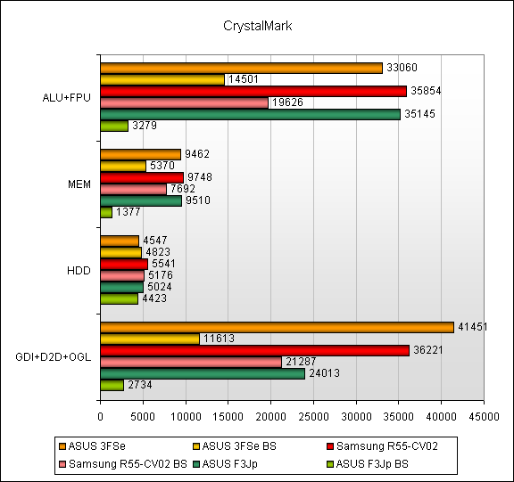 Питание ноутбука осуществляется от батареи Li-Ion 11,1 В 53 Вт/ч (6 cells: 4800 мАч, 3S2P), что довольно неплохо для модели среднего класса. Такой батареи должно хватить на довольно продолжительный промежуток времени. Блок питания 100-240 В, 1,5 А, 50-60 Гц / 90 Вт, 19В, 4,74A тоже довольно мощный и должен обеспечить заряд аккумулятора от сети за приемлемый промежуток времени. Тестирование Тестирование всех ноутбуков производится в двух режимах: максимальной производительности и максимальной экономии батареи (BS). Специальный софт, обеспечивающий управление энергопотреблением системы и отвечающий за энергосбережение, довольно удобен в работе и позволяет изменять частоту процессора, памяти, чипсета и частоту видеокарты - это намного более гибко управляет энергосбережением. Записав эти настройки в нужный вам профиль можно легко переключаться с помощью спецклавиш в верхней правой части клавиатурной панели.