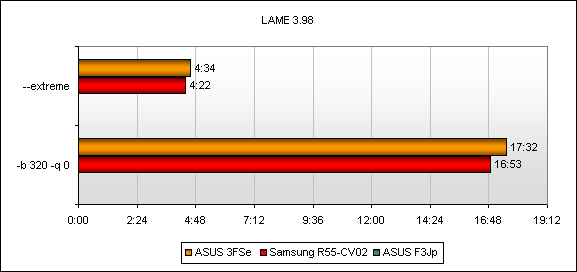 Несмотря на использование производительных комплектующих, ноутбук ASUS F3Se способен проработать от батареи 76 минуты в режиме максимальной производительности. При экономии батареи (нормальная работа в текстовом редакторе, просмотре картинок и т.д.) этот показатель увеличивается до 176 минут. Вполне хороший результат как для системы такого класса. Заряд батареи составил 139 минут, что достаточно медленно, имея такую мощность БП (АДАПТЕРА), хотя не стоит забывать и о большой емкости самой батареи. По рисункам видно, что все графики не доходят до нижнего уровня 5% - это обусловлено нежеланием операционной системы понижать заряд ниже этого резерва батареи, оставляя за собой возможность, по выбору пользователя, корректно завершить работу или перейти в спящий режим. Выводы Модель F3Se от компании ASUS получила от серии F3 довольно привлекательный дизайн и очень качественно продуманную и удобную эргономику. Клавиши, как клавиатуры так и тачпада, достаточно упругие и податливые в нажатии. Аппаратное обеспечение, установленное в ноутбук, показало хорошие характеристики и неплохие скоростные показатели, как для его цены. Дисплей установленный в этой модели довольно компактен со средней регулировкой яркости, но это не мешает ему хорошо воспроизводить изображение при достаточно больших углах обзора. Качественная подборка технологий связи и дополнительного «навесного оборудования» - все довольно функционально и способно удовлетворить даже самого требовательного пользователя. Именно за счет «новоиспеченной» платформы Santa Rosa ноутбук получил очень энергоэкономичную систему питания, высокопроизводительный процессор и шину передачи данных. Благодаря последнему нововведению эта модель достойно выделяется из ряда ноутбуков ASUS. Вот она, реализация новой технологии от компании Intel. Плюсы: