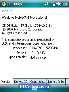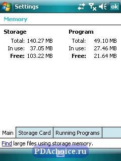 Количество оперативной памяти стандартно для многих коммуникаторов, это старые добрые 64 Мб, которые едва ли порадуют истинного поклонника Windows Mobile. Зато объем flash-памяти достойный – 256 МБ, из которых для установки приложений доступно примерно 140 Мб.