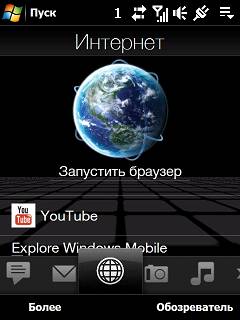 Интернет: Windows Mobile Explore, Windows Live, Windows Mobile Extras и