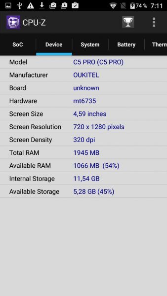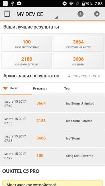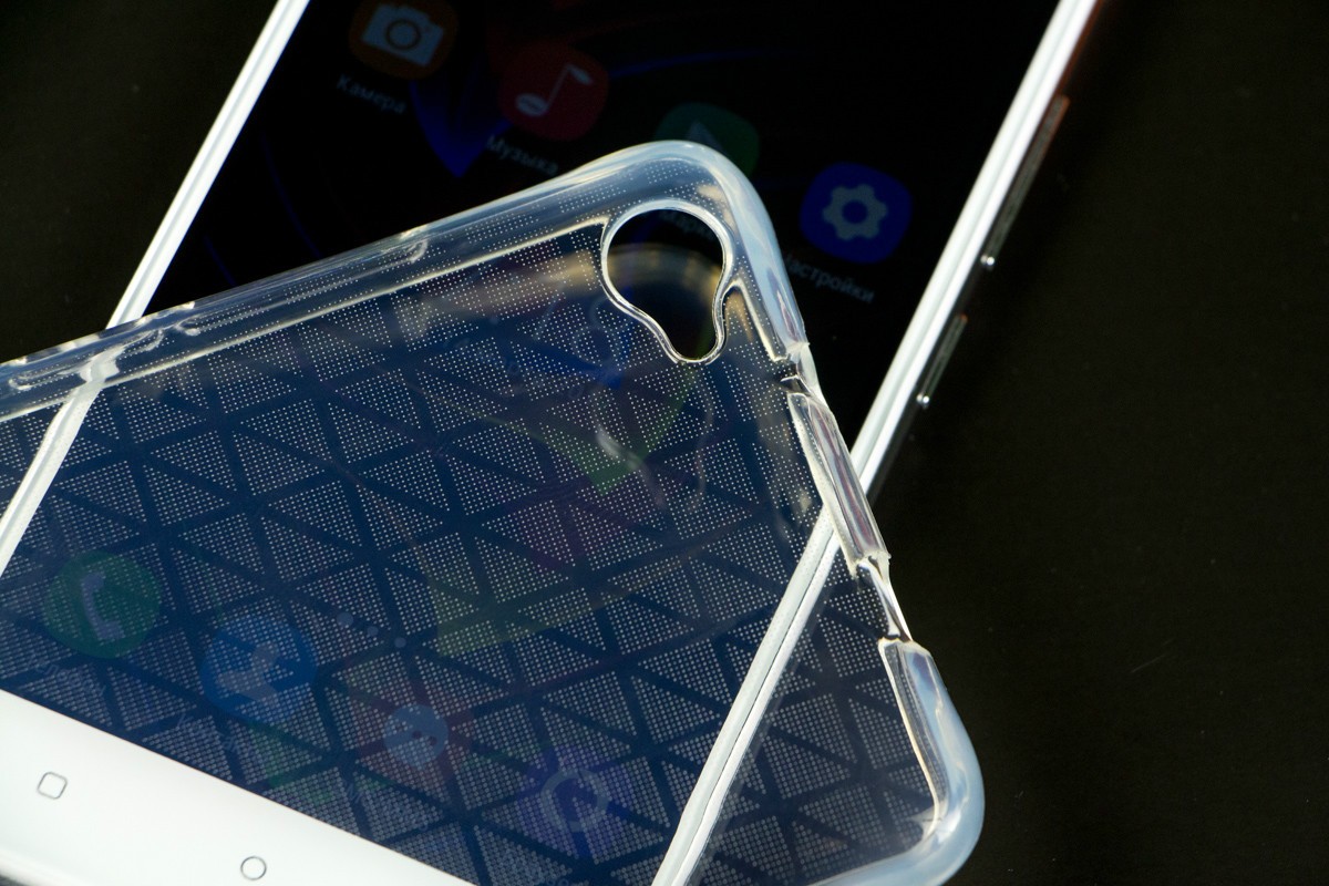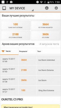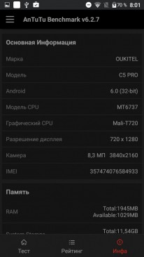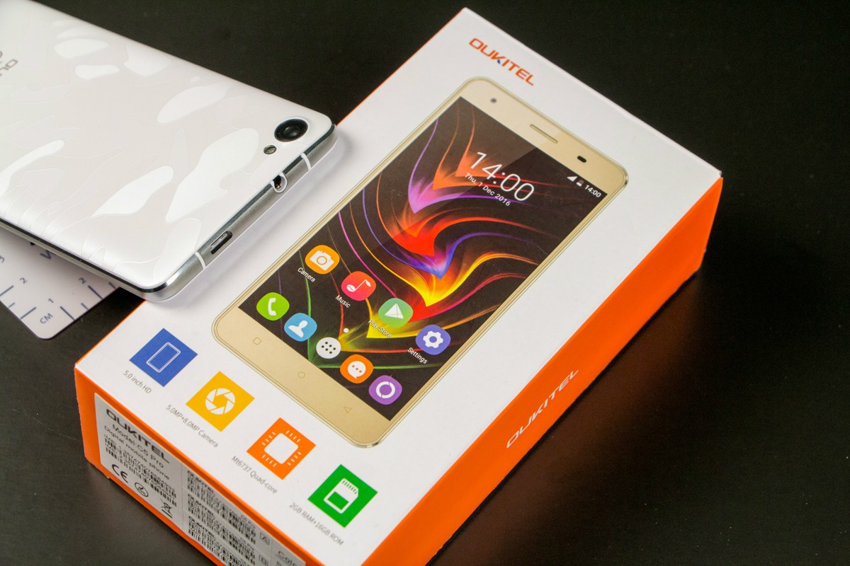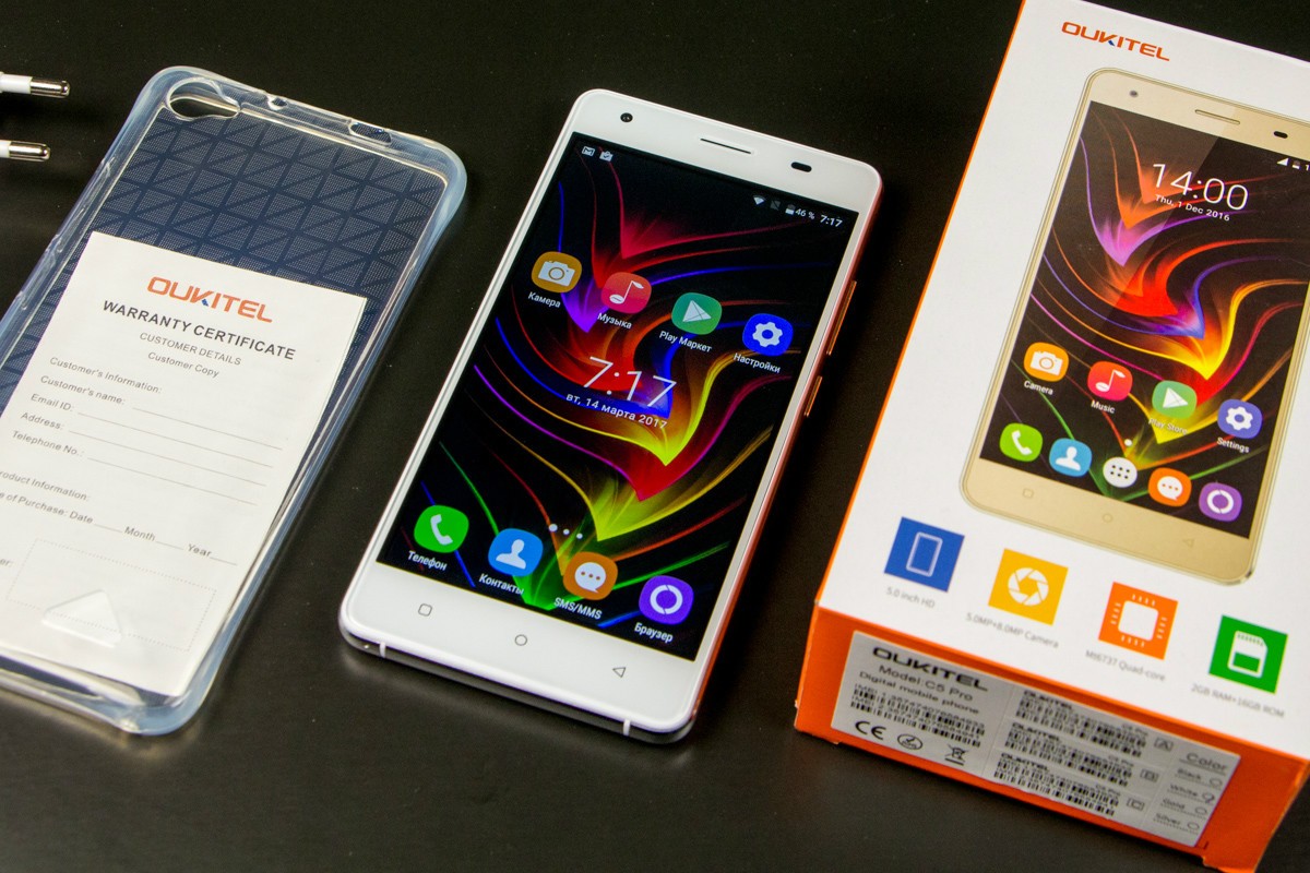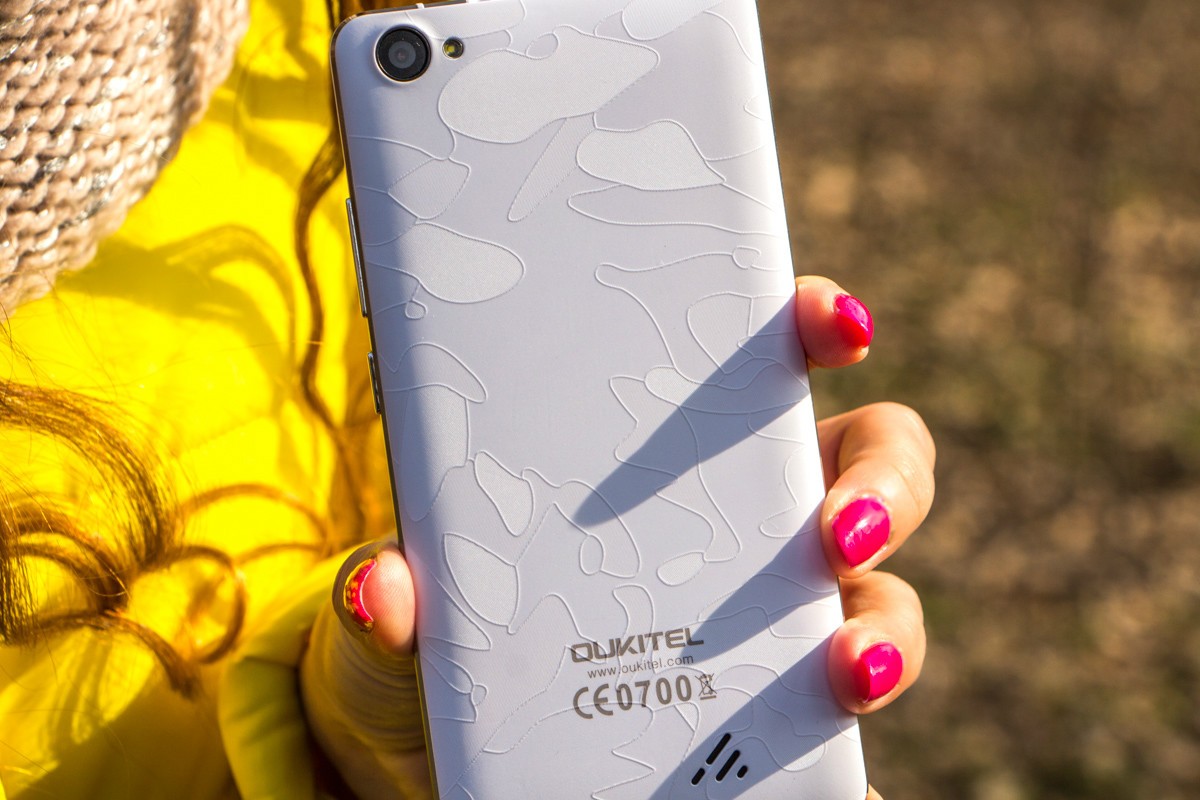 Обзор Oukitel C5 Pro – «боевой» раскрас и сверхпрочный экран за $70!Если ранее тестируемые нами смартфоны компании Oukitel в большинстве своем подкупали изящными металлическим корпусами и продвинутыми спецификациями, то 70-долларовый двухсимник C5 Pro заинтересовал своим «боевым» раскрасом и сверхпрочным экраном из 2.5D-стекла. Настолько ли модель практична в использовании, как это позиционирует производитель, расскажем в обзоре. КомплектацияВ коробке фирменных оранжево-белых цветов с большим изображением Oukitel C5 Pro и его спецификациями на лицевой и тыльной части наряду с самим смартфоном нашлось место адаптеру питания, кабелю microUSB-USB и прозрачному силиконовому чехлу. Дизайн и функциональные элементыК внешности Oukitel C5 Pro, не глядя на его бюджетный статус, дизайнеры подошли с особенным трепетом, ведь он получился и оригинальным, и практичным. Особую изюминку ему придает специальная текстура тыльной панели, которую в белой расцветке корпуса смартфона можно окрестить зимним камуфляжем. Материал не только красивый, но и очень приятный на ощупь. Ощущается как ткань, абсолютно не скользит в руке плюс не пачкается. Доступных расцветок – четыре: белая, черная, серебристая и золотистая. Задняя крышка у смартфона съемная. В ней предусмотрены вырезы под объектив 5Мп камеры, светодиодную вспышку и мультимедийный динамик. Под ней спрятан аккумулятор на 2000 мАч и три отдельных слота – под две сим-карты и карту памяти. Замечу, что несмотря на разборную конструкцию, смартфон отлично собран – ничего не люфтит и не скрипит. Прочности, а заодно и внешней привлекательности устройству добавляет также толстая металлическая рамка по периметру корпуса с зеркальным алмазным срезом. На нижнем торце в нее врезан вывод микрофона, а на верхнем порт microUSB и 3.5 мм аудиовыход. На правой «боковушке» обустроена качелька регулировки громкости и кнопка питания. Большой палец к ним дотягивается легко. Благодаря небольшим габаритам Oukitel C5 Pro (144.6x72x9.3мм) не возникает трудностей и с навигацией по меню, в том числе, когда держишь смартфон одной рукой. Аппарат довольно увесистый (174 г) - в ладони лежит надежно, хотя и заметно отягощает ее. Помимо внушительного веса, «воинственной» раскраски и металлической рамки на мощь C5 Pro намекает также его экран, прикрытый 2.5D-стеклом с индикатором твердости 9H. Последний соответствует минералу оксида алюминия, который царапается алмазом. Надо признать прочность покрытия в ходе тестирования подтвердилась - ни царапин, ни потертостей на 5-дюймовом панели C5 Pro не появилось, хотя защитную пленку, наклеенную на него «из коробки», я сняла в первый же день. С другой стороны, и молотком с гвоздями, как это делал производитель в презентационных роликах, я экран смартфона не проверяла. Под дисплеем у Oukitel C5 Pro расположены серные кнопки управления без подсветки, что, безусловно, не особо удобно в темное время суток. Над экраном обустроены датчики освещения/приближения, прорезь разговорного динамика и объектив 2Мп. ДисплейРазрешение 5-дюймового дисплея смартфона составляет 1280х720 точек. Если уткнутся в него носом, то отдельные пиксели увидеть можно, но в целом экран смотрится хорошо. Установленная здесь IPS-матрица имеет широкие углы обзора, приличную контрастность и яркость. Максимального уровня последней, правда, не всегда хватает для работы в условиях яркого 