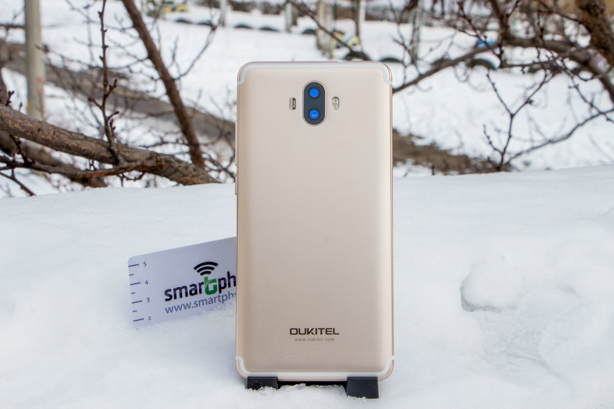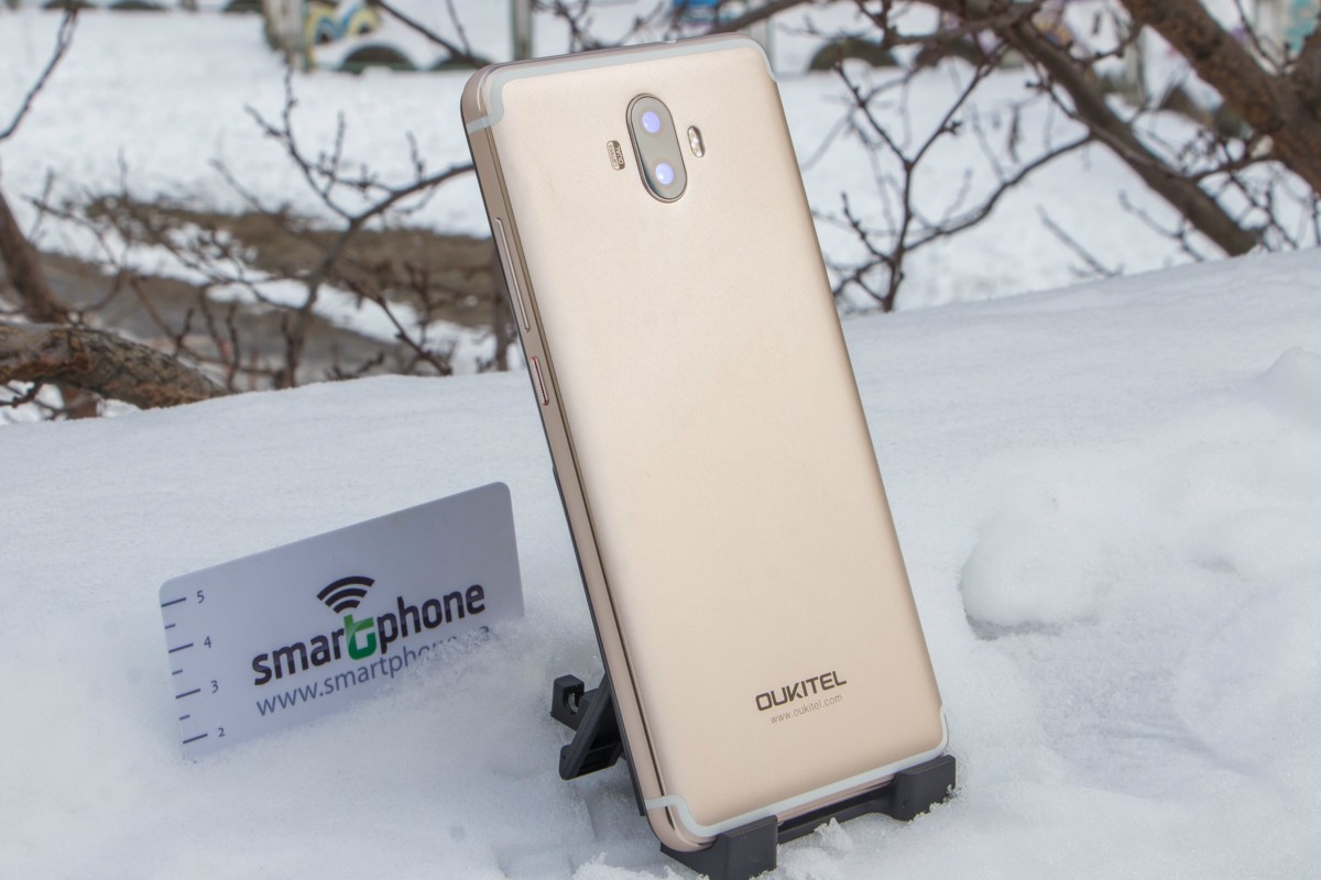 Обзор Oukitel K8000 – смартфон, который нереально разрядить за суткиOukitel K8000 – один из наиболее удачных представителей линейки телефонов-пауэрбанков от Oukitel стоимостью $210. Невероятная автономность при небольшой цене и функционале, который ограничен только воображением. О том, что это за устройство, его характеристиках и особенностях читайте в нашей статье. Комплектация Комплект поставки выглядит традиционным для "K" серии – компактная коробка черного цвета из очень плотного картона. Внутри находится сам телефон в жестком силиконовом бампере, инструкции, зарядное устройство (9В/2А), кабель USB-MicroUSB и OTG переходник. Защитная пленка предварительно поклеена на экран, что позволит работать с аппаратом сразу из коробки без опасений о случайных повреждениях. Дизайн Внешне устройство выглядит не слишком примечательно – его достаточно сложно отличить от большинства других. Однако, так только на первый взгляд. Это очень добротная трубка в цельнометаллическом корпусе. Само собой, она не разбирается, что в свою очередь придает ей особой прочности. Ничего не скрипит и не люфтит, но отказываться от использования бампера я бы не советовал, поскольку, несмотря на общую прочность металла, того же нельзя сказать о задней крышке. На верхнем слое краски очень легко остаются небольшие царапинки, которые вряд ли придают устройству красоты и элитного внешнего вида. Передняя панель традиционно отдана под экран, разговорный динамик, фронтальную камеру, датчики приближения и освещения. Кроме всего вышеперечисленного здесь есть еще и сканер отпечатка пальца, который слегка утоплен в углублении под дисплеем. А вот на задней крышке находится не так уж и много деталей: пластиковые панели сверху и снизу устройства, двойной модуль камеры и вспышка. В остальном все традиционно. На левой грани – гибридный лоток под 2 нано симки, либо только одну, но с картой памяти объемом до 128 Гб. На правой – механические кнопки регулировки громкости и блокировки экрана, выполненные из металла. Сверху – 3,5 мм разъем под наушники, а снизу порт microUSB и 2 решетки, одна под динамик, вторая под микрофон. В целом, это очень симпатичное устройство, хоть и не лишенное недостатков. К сожалению, для комфортного использования человеком со средним размером ладони оно слишком тяжело и велико (156х77,8х10,7 мм при весе в 232,8 грамм), потому рекомендовать его к покупке могу только мужчинам, с широким хватом ладони, иначе о работе с аппаратом лишь одной рукой можно забыть. Поставляется Oukitel K8000 в золотистом, синем и полностью черном цветовых исполнениях. Дисплей Крайне неоднозначно на этом смартфоне смотрится именно его дисплей. 2018 год на дворе, а здесь всего HD разрешение. Правда, в защиту сего девайса можно сказать, что это здорово помогает экономить заряд батареи. Размер экрана составляет 5,5 дюймов, а его разрешение – 1280х720. Удивительно, но здесь установлена матрица Samsung AMOLED. Отличительной особенностью подобных дисплеев отмечают высокую энергоэффективность и хорошее качество отображения цветов. Стекло маркое, но отпечатки оттираются достаточно легко. Настраивается все: от размера шрифта и масштаба изображений, до яркости. Присутствует и режим защиты глаз, призванный снижать уровень синего оттенка. Яркий солнечный день не станет проблемой для K8000, картинка остается видимой и не выцветает полностью, а м
