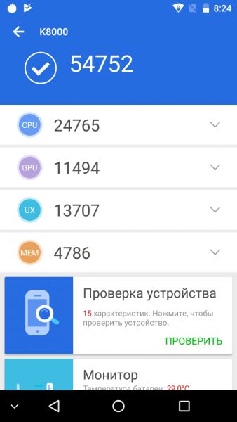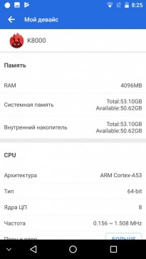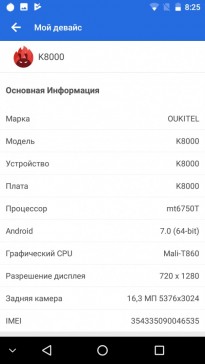 А вот после полной разрядки восполнить потерянную энергию можно достаточно быстро, благодаря технологии Pump Express 2.0 и зарядному устройству с параметрами 9В/2А. Первые 25% заряда можно получить уже за пол часа, 84% за 120 минут, а 100% за 200. Звук Динамик один, находится в нижней части смартфона под решеточкой. Слышимость хорошая, запас громкости большой. Годится как для прослушивания музыки без наушников, так и для громкой связи. На качество нареканий нет. Случайно заглушить тоже не получится, а значит важное сообщение, либо звонок не пропустить. Система и безопасность Работает K8000 под управлением системы Android 7.0, с фирменной оболочкой от Oukitel, знакомой нам по их К-серии устройств. Практически все русифицировано, за исключением редких пунктов меню на английском языке. Обычно они соответствуют разделам, где описываются, либо настраиваются необычные функции гаджета. Здесь таковые также имеются. Например, при помощи свайпов тремя пальцами можно делать скриншоты и открывать приложение камеры. Присутствуют и более привычные функции быстрого доступа – рисование символов по заблокированному экрану. Самым большим бонусом подобного решения будет именно возможность кастомизации вызываемых приложений. Для любителей безопасного хранения данных предусмотрен быстрый сканер отпечатков пальцев со скоростью срабатывания в 1 мс. Работает быстро, правда не всегда хорошо, потому предлагаю сохранять отпечатки как можно боле деликатно, придавая особое внимание внесению последнего в базу данных телефона. Выводы Oukitel K8000 - это смартфон стоимостью $210, с батареей которого можно считаться, ведь его практически невозможно разрядить за целый день даже очень активного использования. Выглядит стильно, в руке лежит удобно. Да, подойдет не всем, но тем, кому приглянется может стать верным спутником даже в самых сложных ситуациях.