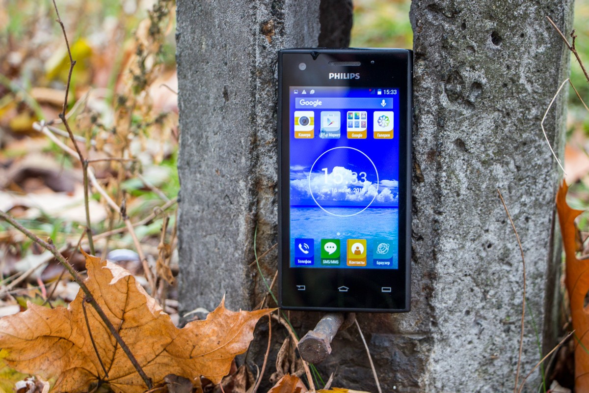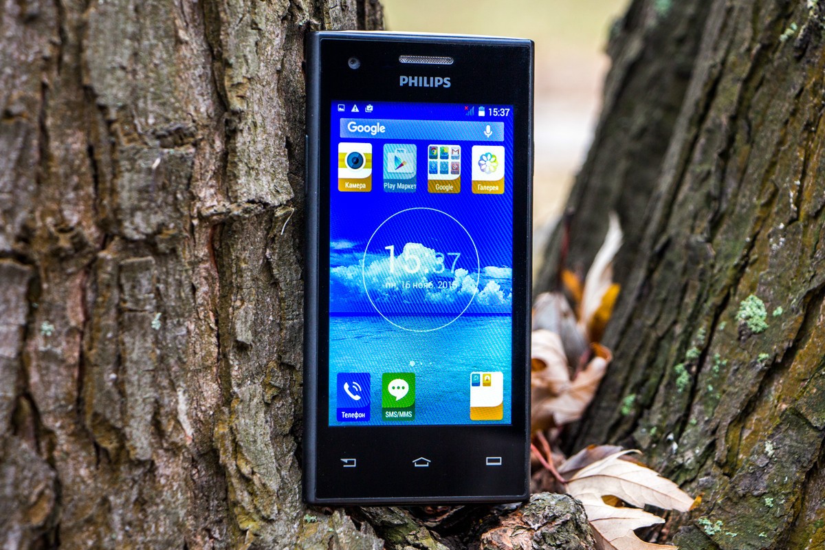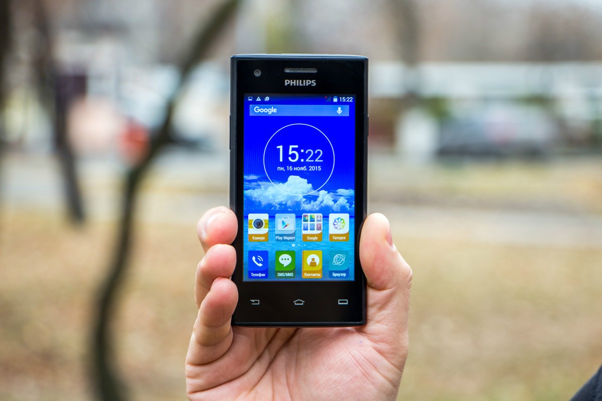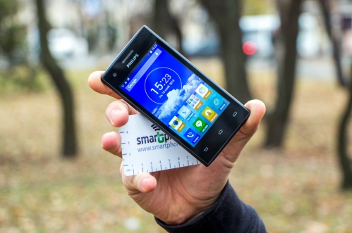 КорпусPhilips S309 - компактный смартфон и это первое, что ощущается в руке. Важную роль в этом играют и габариты 4-х дюймовой трубки, и подход дизайнеров к исполнению деталей. Корпус в его тыльной части имеет закругленные края. Производитель пишет об изгибе в 63 градуса, но это мало о чем говорит, пока сам не возьмешь смартфон в руку. Овальная тыльная часть приятно «вливается» в ладонь и крепко фиксирует в ней устройство. Пальцами одной руки можно достать даже до самого отдаленного уголка экрана и кнопок. На корпусе всего две клавиши: справа - кнопка питания, слева - управления громкостью. Они лишь немного выступают над рамкой, но имея не гладкую поверхность, не дают спутать себя с боковой панелью и нажимаются без ошибок. Что касается остальных портов и разъемов, то внизу только микрофон, а вверху порт microUSB и стандартный аудиовыход. С тыльной стороны рядом с камерой разместили вспышку, а в самом низу на корпусе три отверстия под вывод динамика громкой связи, который, кстати, даже на максимуме громкости не дребезжит. В отдельном окрасе темно-серого цвета выполнена крышка доступа к аккумулятору и слотам для двух SIM карт и карты памяти. Этот материал немного собирает на себе отпечатки пальцев, но благодаря цвету это можно заметить только, если смотреть в упор. Глянцевые вставки, к слову, еще на верхнем и нижнем торцах. Остальной пластик черный не маркий, но и не софт-тач. Для справки, если не снять аккумулятор, то вставить карточки не получиться. А вот для его подзарядки в стандартной комплектации обязательно идет зарядное устройство, соответствующий USB кабель, небольшое краткое руководство, простенькая гарнитура и защитная пленка на экран. Если говорить о сборке, то выполнена она качественно. Имея у себя в доме телевизор и чайник от Philips, я знаю, на что способны эти товары и как долго они могут служить без поломок и программных сбоев. Так что специально проверил до мелочей каждый стык и по максимуму загружал смартфон все время, пока трубка была у нас на тесте. Сбоев, зависаний и перезагрузок не было. ДисплейПокупателя 4-дюймового Philips 309 не должен волновать тот факт, что тут используется TFT-экран с разрешением WVGA (480x800). И углы обзора хороши, особенно по горизонтали, и сенсор быстро и без ошибок откликается на запросы пользователя. Мультитач получил одновременную поддержку двух пальцев, а благодаря встроенному датчику освещения яркость подсветки экрана может регулироваться автоматически. Дисплей прикрывается материалом, который достойно вынес больше недели транспортировок в сумке с другими гаджетами. Царапин не образовалось, как, собственно, и после механического воздействия на него, например, монетой. Аппаратная частьХотя по части производительности Philips 309 скромен, многозадачность от этого не страдает. В нем установлен процессор MediaTek MT6572 на 2 ядра с частотой в 1 ГГц, графический чип Mali-400 MP и 1 ГБ оперативной памяти. На практике можно свободно переключаться между браузером, контактами, вайбером и другими программами. Запускается и видео в HD-разрешении, а также игры. По последним более детально. Аркады без 3D идут без проблем, требовательные симуляторы запустить можно, но тут на качественную графику уповать не стоит. Впрочем, разрешение и диагональ экрана также не делает из него мультимедийный комбайн. Но, по правде, это объективная плата при заявле