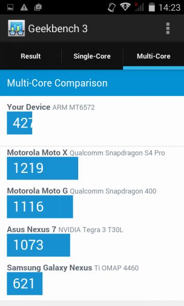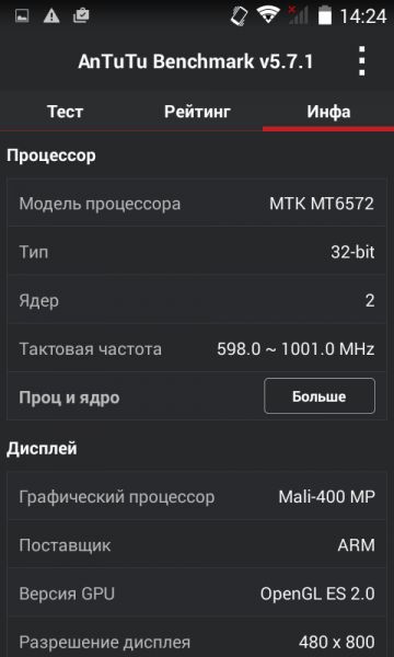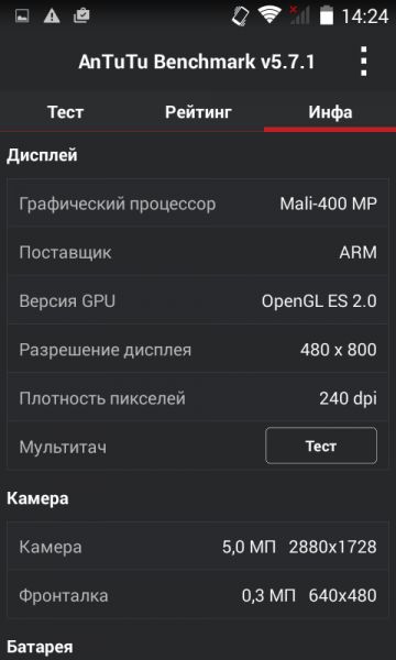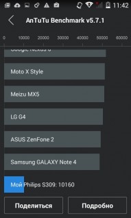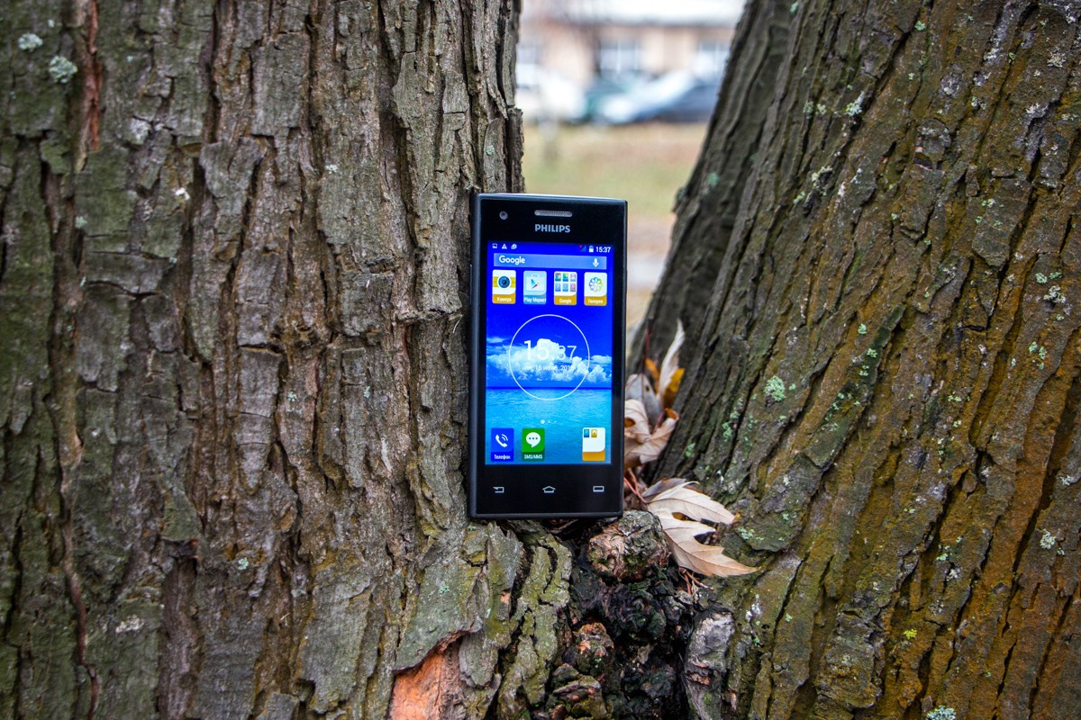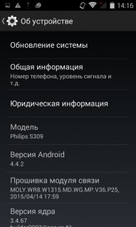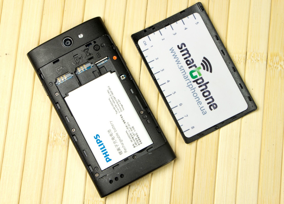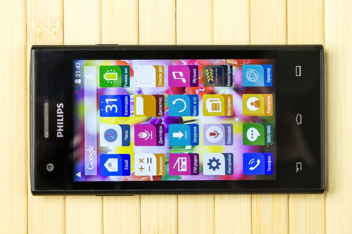 КорпусPhilips S309 - компактный смартфон и это первое, что ощущается в руке. Важную роль в этом играют и габариты 4-х дюймовой трубки, и подход дизайнеров к исполнению деталей. Корпус в его тыльной части имеет закругленные края. Производитель пишет об изгибе в 63 градуса, но это мало о чем говорит, пока сам не возьмешь смартфон в руку. Овальная тыльная часть приятно «вливается» в ладонь и крепко фиксирует в ней устройство. Пальцами одной руки можно достать даже до самого отдаленного уголка экрана и кнопок. На корпусе всего две клавиши: справа - кнопка питания, слева - управления громкостью. Они лишь немного выступают над рамкой, но имея не гладкую поверхность, не дают спутать себя с боковой панелью и нажимаются без ошибок. Что касается остальных портов и разъемов, то внизу только микрофон, а вверху порт microUSB и стандартный аудиовыход. С тыльной стороны рядом с камерой разместили вспышку, а в самом низу на корпусе три отверстия под вывод динамика громкой связи, который, кстати, даже на максимуме громкости не дребезжит. В отдельном окрасе темно-серого цвета выполнена крышка доступа к аккумулятору и слотам для двух SIM карт и карты памяти. Этот материал немного собирает на себе отпечатки пальцев, но благодаря цвету это можно заметить только, если смотреть в упор. Глянцевые вставки, к слову, еще на верхнем и нижнем торцах. Остальной пластик черный не маркий, но и не софт-тач. Для справки, если не снять аккумулятор, то вставить карточки не получиться. А вот для его подзарядки в стандартной комплектации обязательно идет зарядное устройство, соответствующий USB кабель, небольшое краткое руководство, простенькая гарнитура и защитная пленка на экран. Если говорить о сборке, то выполнена она качественно. Имея у себя в доме телевизор и чайник от Philips, я знаю, на что способны эти товары и как долго они могут служить без поломок и программных сбоев. Так что специально проверил до мелочей каждый стык и по максимуму загружал смартфон все время, пока трубка была у нас на тесте. Сбоев, зависаний и перезагрузок не было. ДисплейПокупателя 4-дюймового Philips 309 не должен волновать тот факт, что тут используется TFT-экран с разрешением WVGA (480x800). И углы обзора хороши, особенно по горизонтали, и сенсор быстро и без ошибок откликается на запросы пользователя. Мультитач получил одновременную поддержку двух пальцев, а благодаря встроенному датчику освещения яркость подсветки экрана может регулироваться автоматически. Дисплей прикрывается материалом, который достойно вынес больше недели транспортировок в сумке с другими гаджетами. Царапин не образовалось, как, собственно, и после механического воздействия на него, например, монетой. Аппаратная частьХотя по части производительности Philips 309 скромен, многозадачность от этого не страдает. В нем установлен процессор MediaTek MT6572 на 2 ядра с частотой в 1 ГГц, графический чип Mali-400 MP и 1 ГБ оперативной памяти. На практике можно свободно переключаться между браузером, контактами, вайбером и другими программами. Запускается и видео в HD-разрешении, а также игры. По последним более детально. Аркады без 3D идут без проблем, требовательные симуляторы запустить можно, но тут на качественную графику уповать не стоит. Впрочем, разрешение и диагональ экрана также не делает из него мультимедийный комбайн. Но, по правде, это объективная плата при заявле