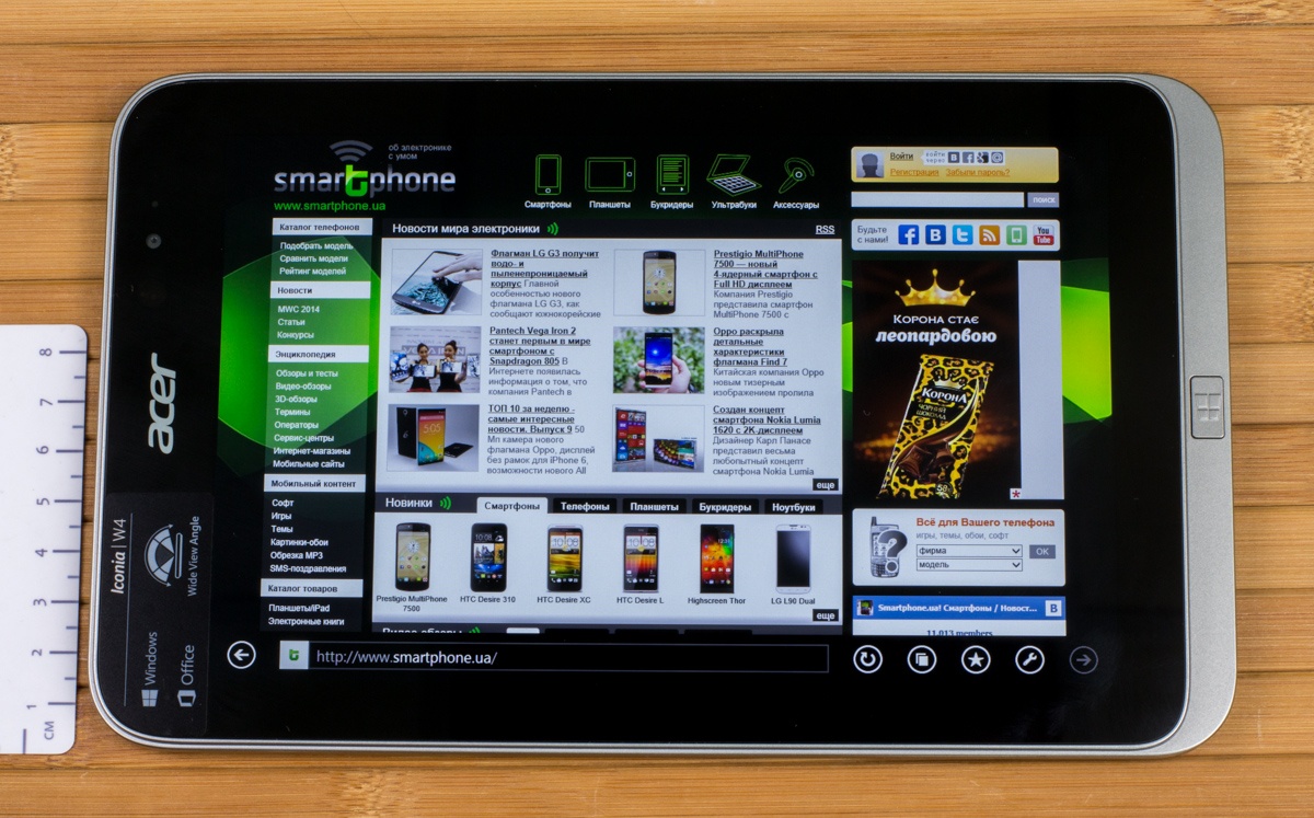На сегодняшний день на рынке Украины они представлены в версиях с поддержкой Wi-Fi и в двух модификациях со встроенной памятью – 32 ГБ и 64 ГБ. При этом их производители обещают в скором времени выпустить также и 3G-модели. Тестируемый экземпляр Iconia W4, кстати, поддерживает 3G. А потому не исключено, что именно Acer первой среди конкурентов запустит в продажу свой планшет с 3G-модулем.