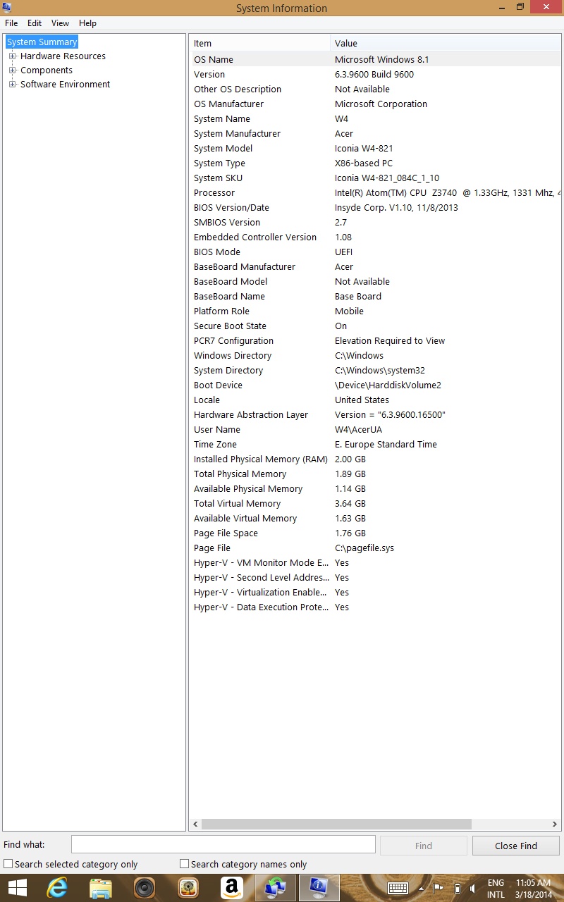 Acer Iconia W4 работает под управлением настольной версии ОС Windows 8.1.
