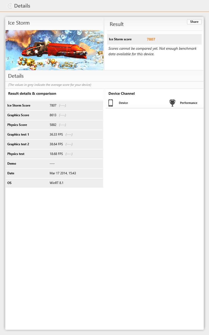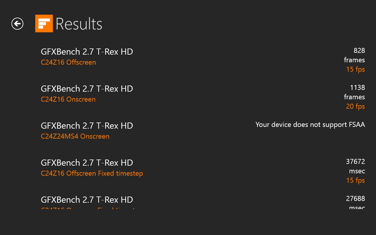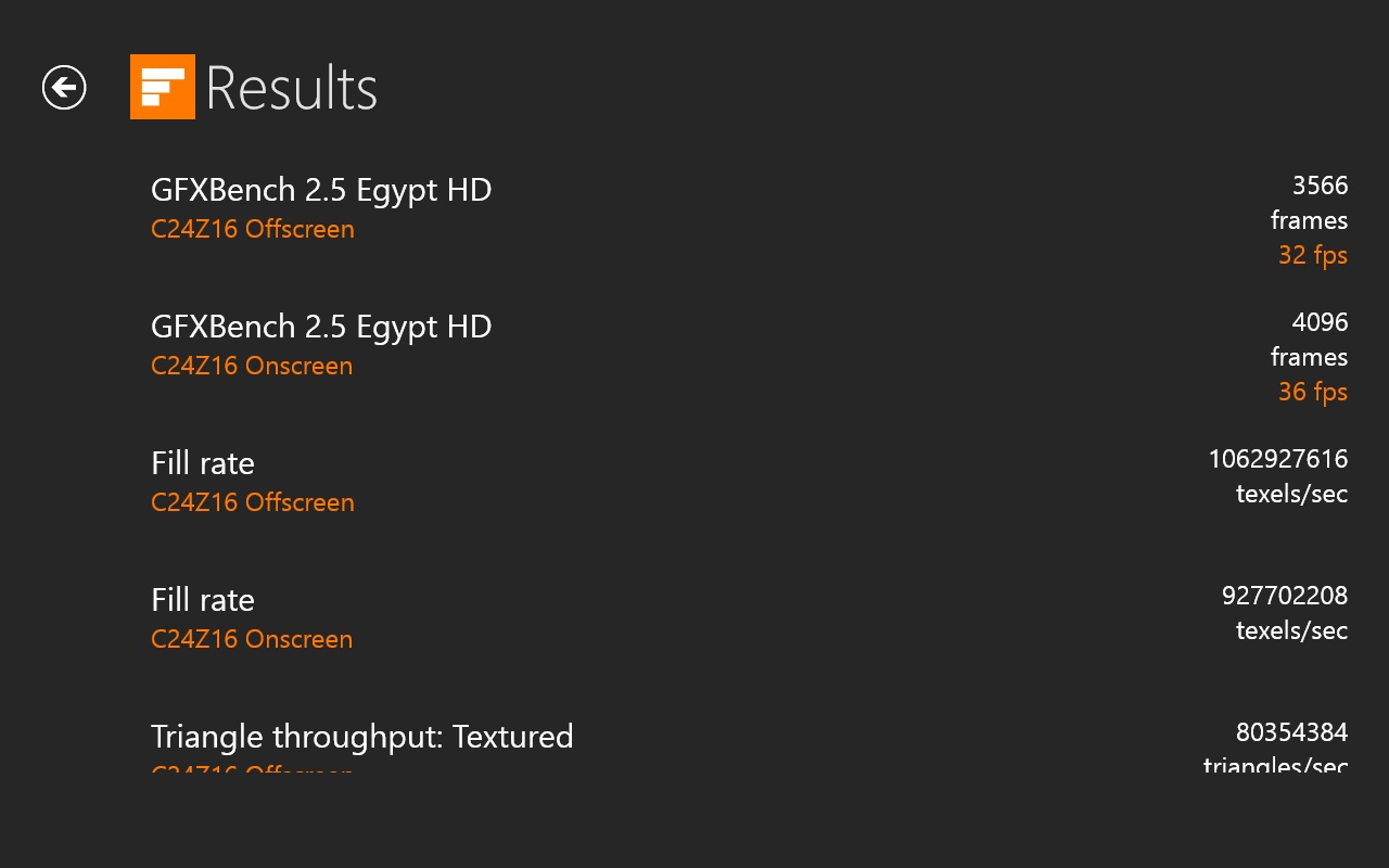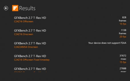 При тестировании производительности системы в играх Iconia W4 оказался позади своих конкурентов Toshiba Encore и Dell Venue 8 Pro. Результаты, показанные им в других тестерах, представлены ниже.
