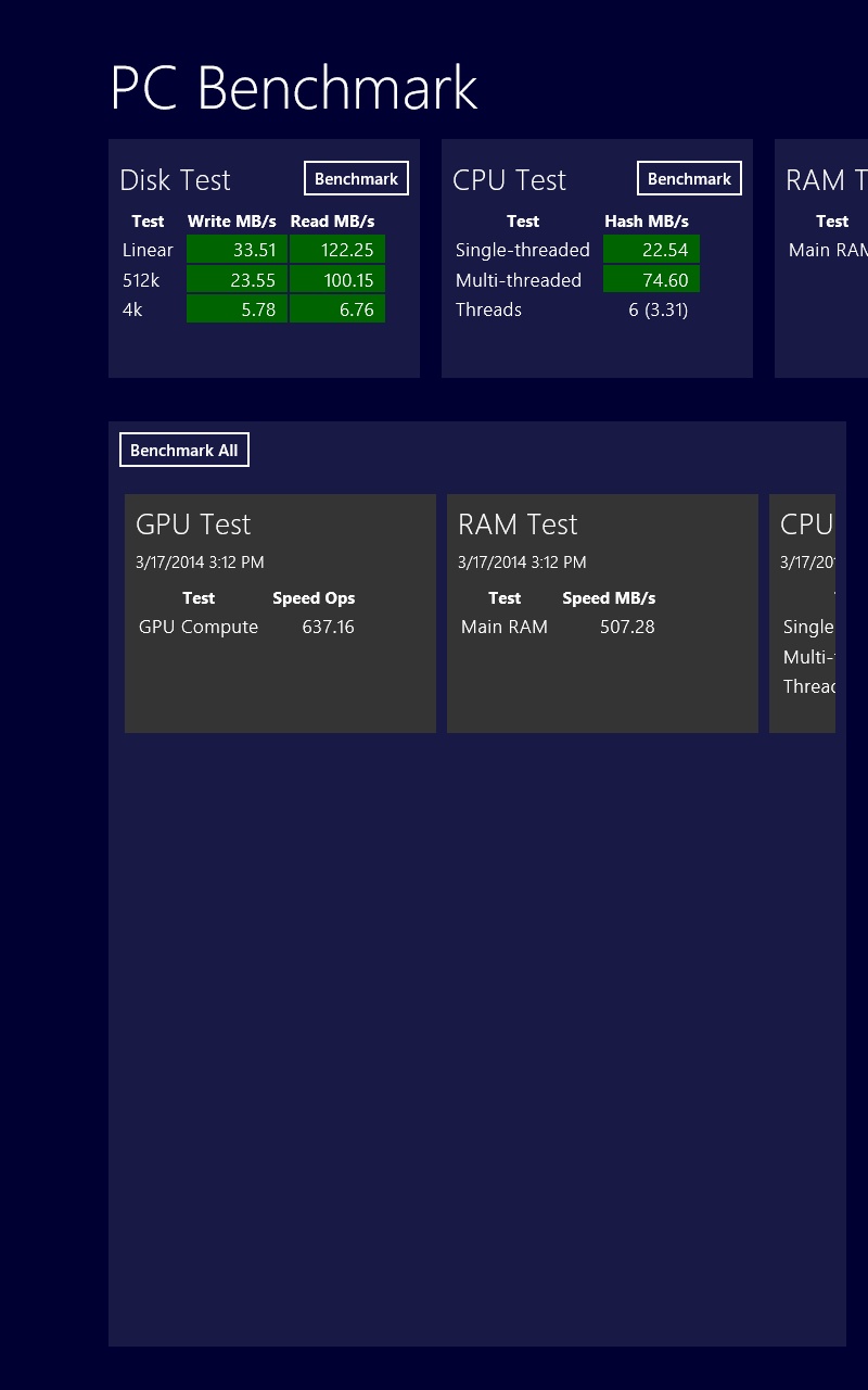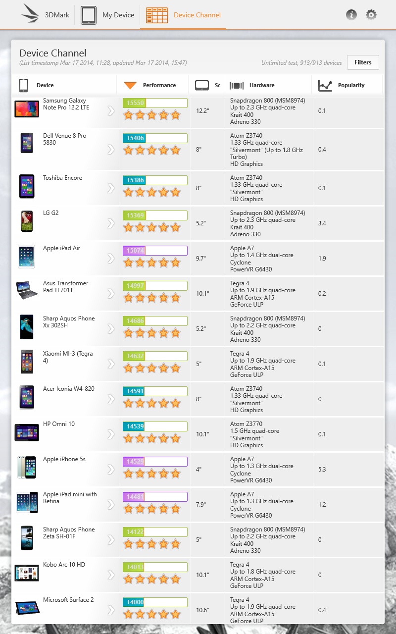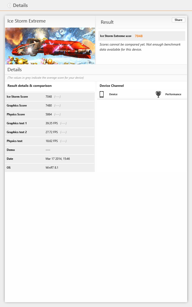 При тестировании производительности системы в играх Iconia W4 оказался позади своих конкурентов Toshiba Encore и Dell Venue 8 Pro. Результаты, показанные им в других тестерах, представлены ниже.