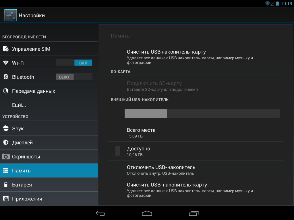 Расширение «штатного» объема предусмотрено как при помощи карт microSD, так и посредством подключения USB-накопителя.