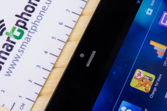 Передняя панель планшета разделена между большим дисплеем, разговорным динамиком, глазком фронтальной VGA-камеры, а также тремя классическими сенсорными кнопками, вынесенными на дисплейную часть плюс индикатором событий.