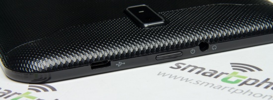 Верхний торец занимают разъем microUSB, кнопка питания и 3,5мм аудиоразъем, а нижний микрофон.
