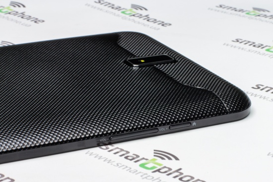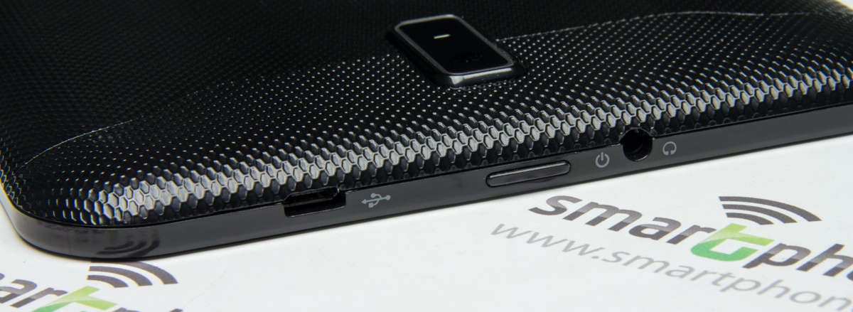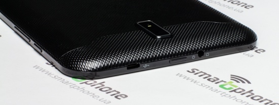 Отлично дополняет дизайн планшета тыльная панель, выполненная из пластика черного цвета с рельефным узором в виде пчелиных сот.