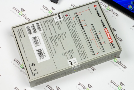 Изображения и надписи на картонной коробке, в которой поставляется планшет, информируют не только о его дизайне, спецификациях на разных языках, но и расположении всех функциональных элементов на его корпусе.