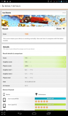 Результаты производительности планшета, показанные в бенчмарках, вполне соответствуют его «начинке» и ценнику.