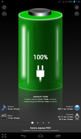 Аккумулятора NETTAB MATRIX 3G DUO емкостью 3600 мАч хватает примерно на 5-ть часов воспроизведения HD-видео с включенным модулем Wi-Fi. В целом одного 100% заряда при умеренных нагрузках достаточно для использования планшета в течение одного рабочего дня.