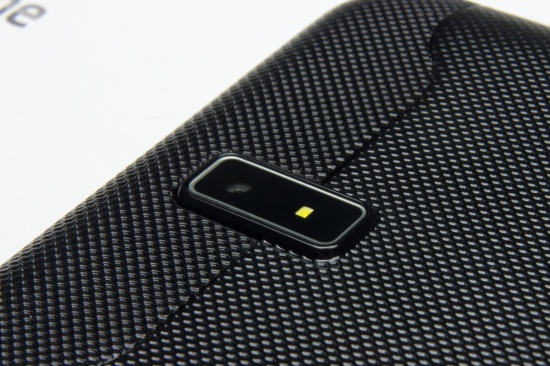 На тыльной панели обустроен глазок основной 8Мп камеры со светодиодной вспышкой. Внизу параллельно друг другу расположились прорези динамиков громкой связи.