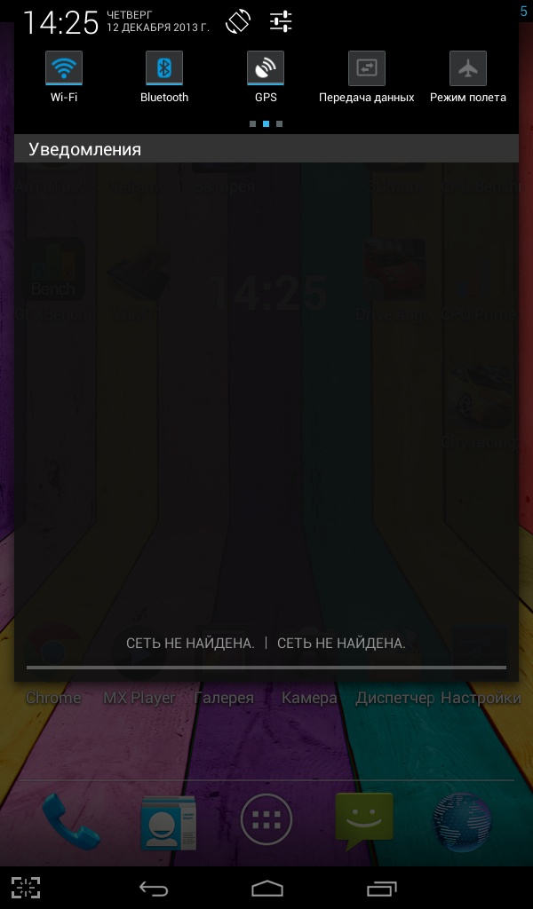 Панель уведомлений позволяет включить/выключить модули Wi-Fi, Bluetooth и GPS, а также отрегулировать другие важные параметры.