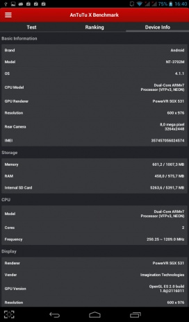Аппаратно внутри 2-ядерный процессор MediaTek MT8377 с тактовой частотой 1,2 ГГц, графика PowerVR SGX531 и 1 ГБ оперативной памяти.
