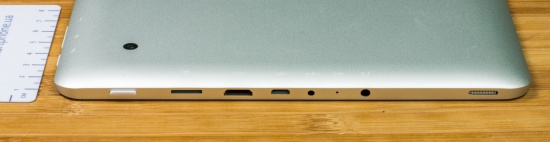 Планшет получил два динамика, производитель разбросал их по разным торцам. Благодаря наличию G-сенсора можно избежать ситуации, когда динамики прикрываются руками.