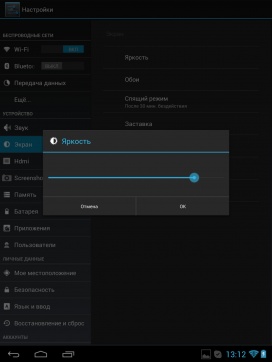 Запас яркости, которая регулируется только вручную, хороший. В солнечную погоду на максимальных ее значениях работа с планшетом не вызывает дискомфортна, информация остается читаемой.