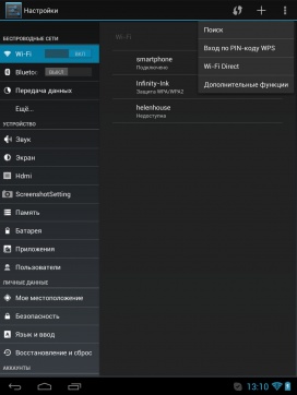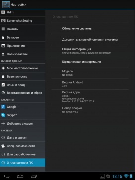 Работает планшет под управлением операционной системы Android 4.1 Jelly Bean «из коробки». Но в ходе тестирования на официальном сайте производителя я нашла прошивку Android 4.2.2, которую без проблем, следуя всем предписаниям инструкции, установила на девайс. И не пожалела. Если с Android 4.1 работу интерфейса меню трудно было назвать идеально быстрой — навигация по системе и настройкам совершалась скорее плавно, то после установки ОС Android 4.2.2 аппарат стал заметно «шустрее».