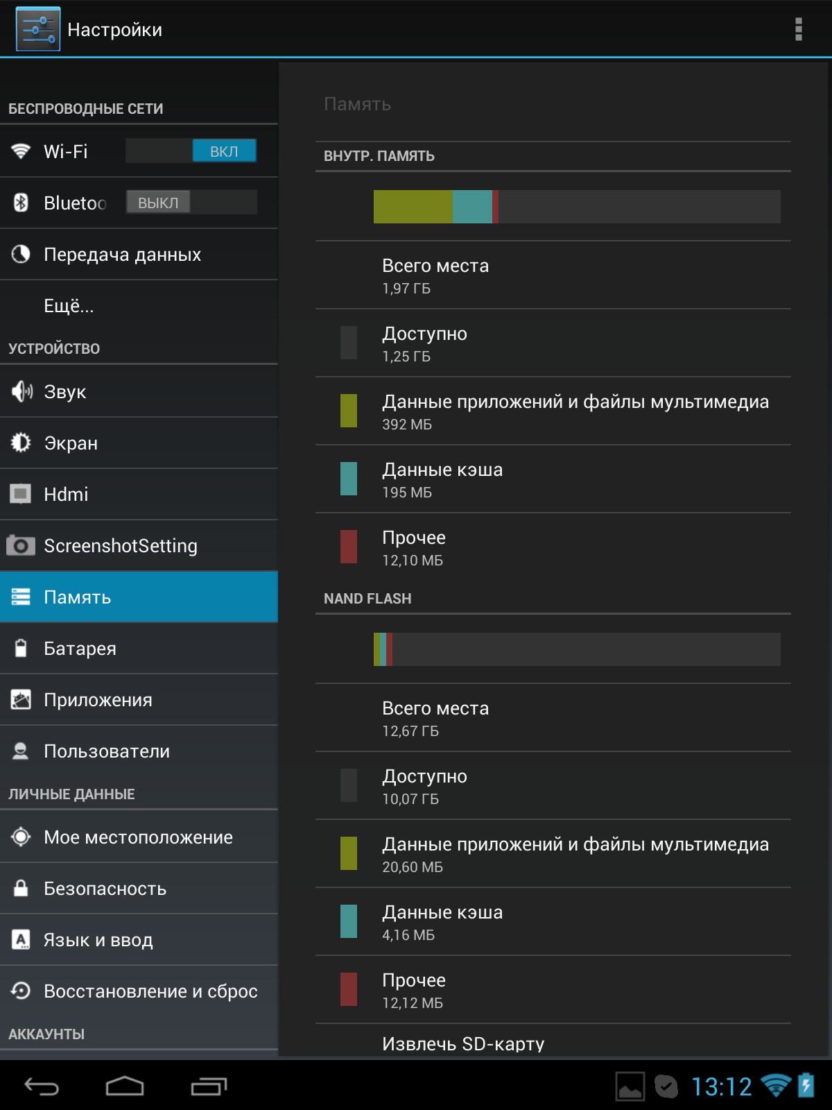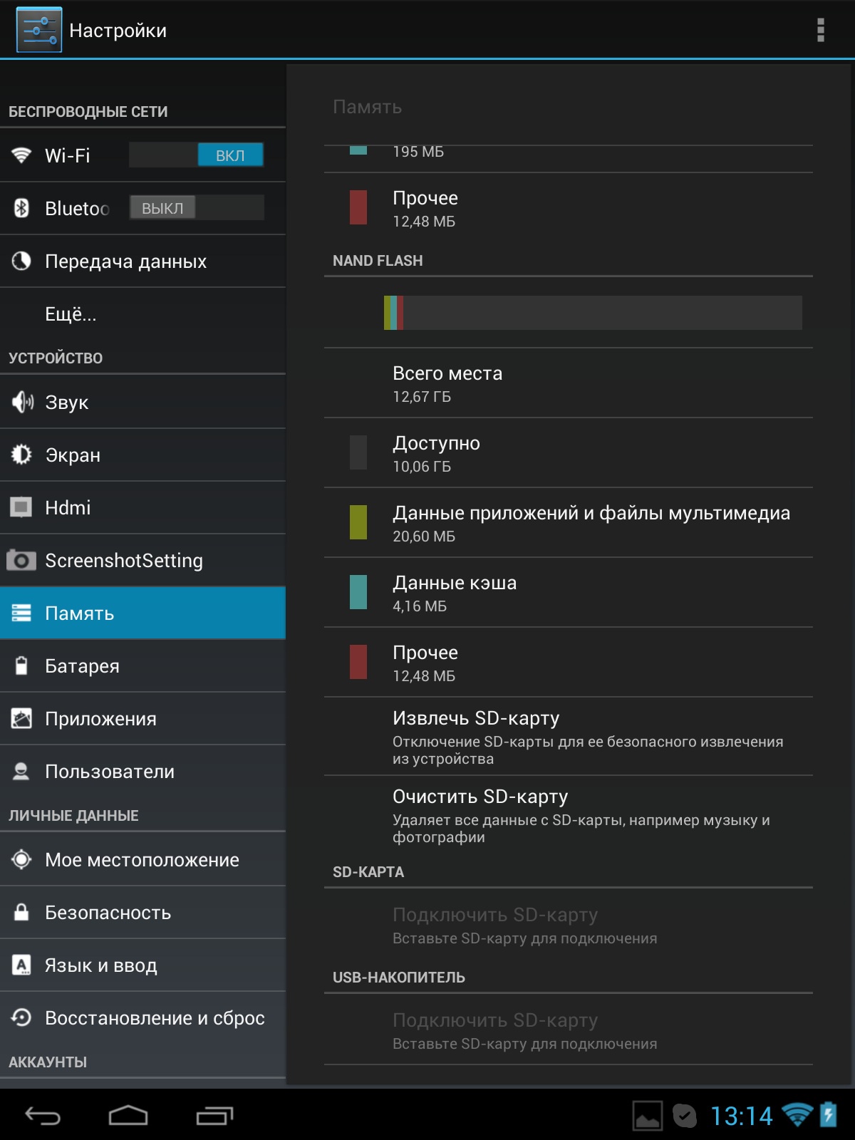 Из 16 ГБ заявленной внутренней памяти пользователю доступно лишь порядка 13 ГБ. Возможность ее расширения с помощью карт формата microSD до 32 ГБ включительно также предусмотрена.