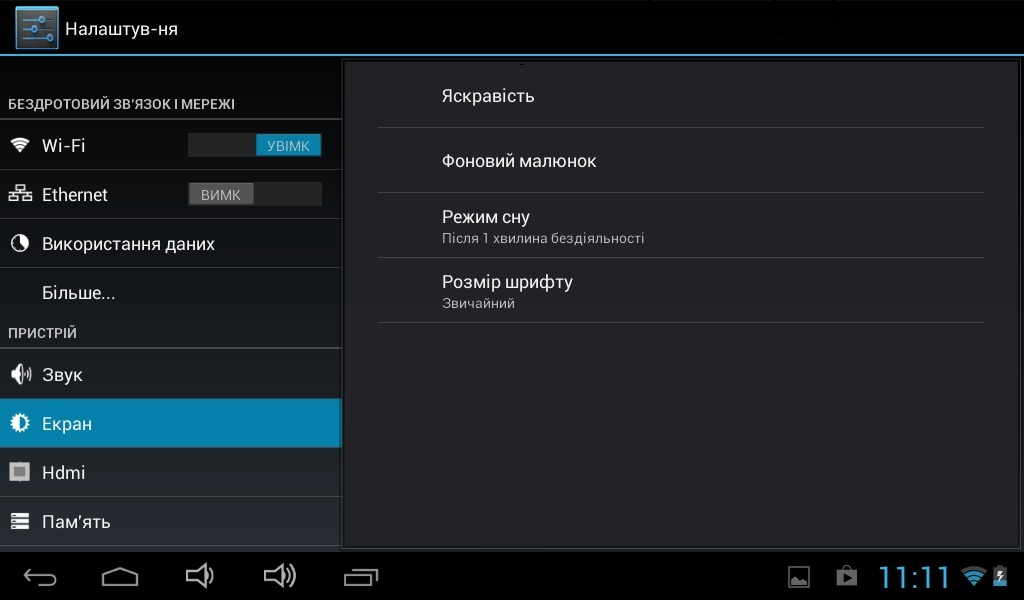 Яркость дисплея регулируется как вручную, так и автоматически. Углы обзора и цветовая насыщенность достаточно хорошие — существенных искажений в передачи цвета при отклонении планшета в разные стороны не заметили. При ярком дневном свете работа с устройством также не вызвала особых нареканий.