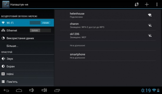 Порадовало наличие в устройстве разъема для mini-HDMI кабеля, слота для карт памяти microSD, а также двух камер фронтальной и основной, несмотря, что снимки и видео, сделанные ими, трудно назвать достаточно хорошими. В некоторой мере огорчило отсутствие встроенных модулей GPS и Bluetooth, хотя в ценовой категории тестируемого девайса ни один планшет не может похвастаться наличием таковых.