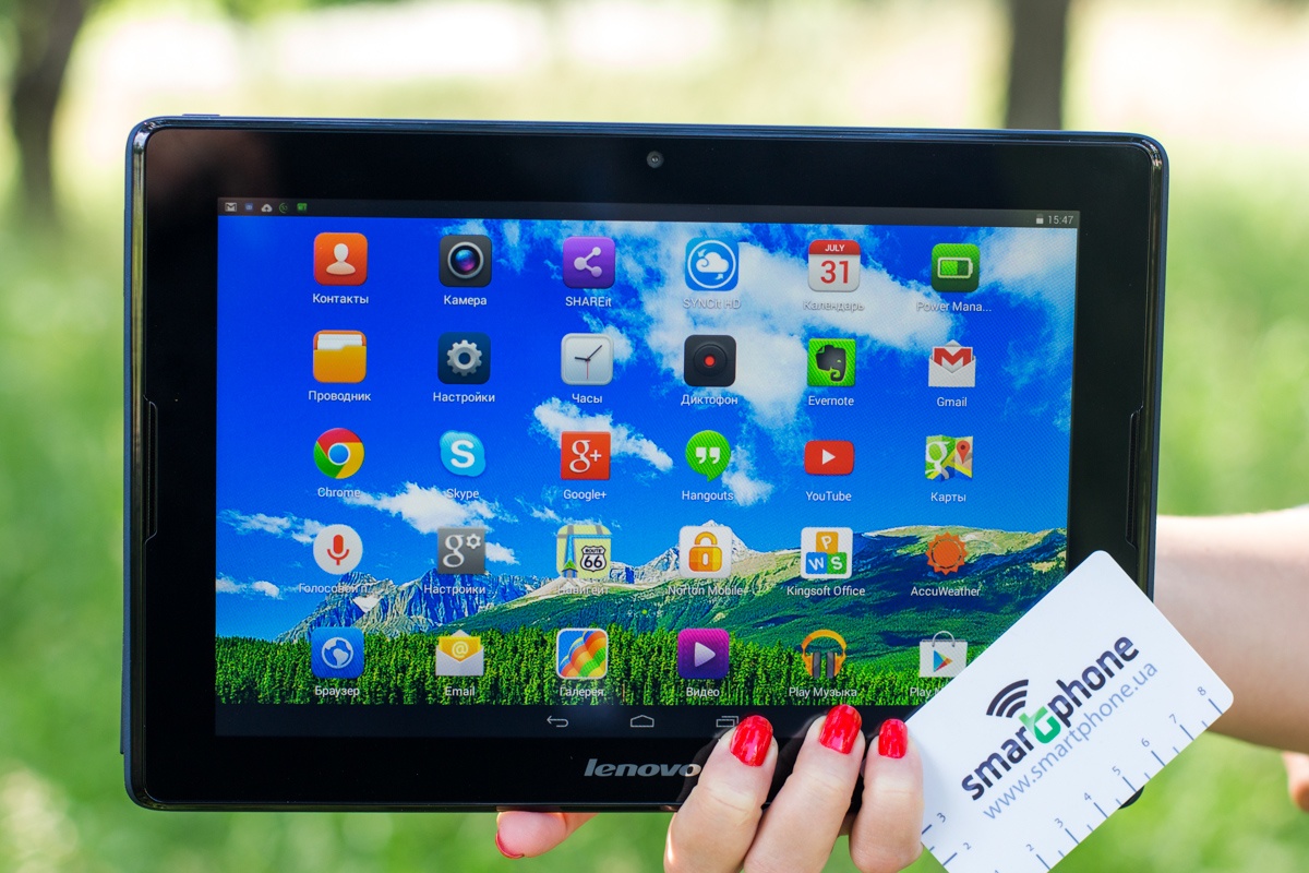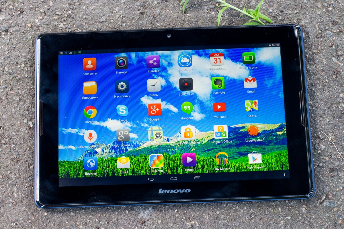 На ярком солнце дисплей Lenovo TAB A10 ощутимо «выцветает», но даже при этом изображение остается видимым. Яркость экрана регулируется исключительно вручную, а мультитач поддерживает до 10 касаний.